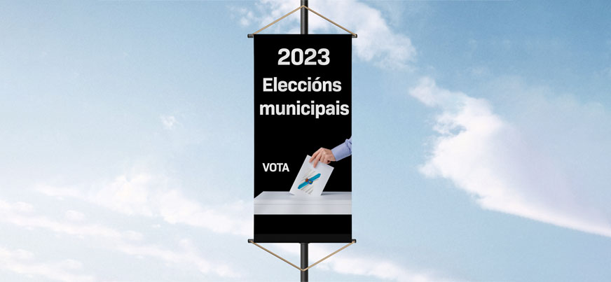 Diseñadas para colgarlas en postes o farolas en la calle y dar visibilidad en ambos sentidos en exterior. Perfectas para publicitar eventos a pie de calle.