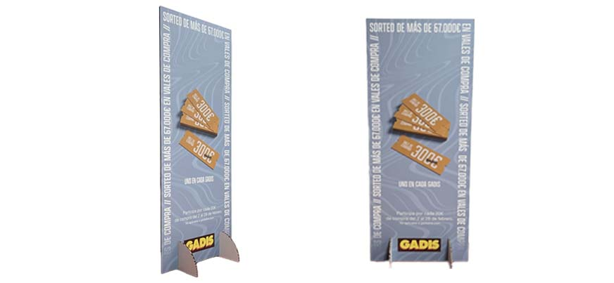 Polipropileno o Dispa cortados en forma de silueta con soporte en forma de peana o en la base para garantizar su apoyo.