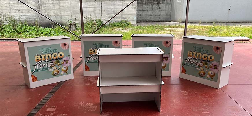 El mostrador de cartón es ligero, fácil de montar y transportar, por lo que es ideal para llevarlo contigo a todos los eventos.