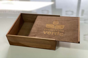 Cajas de madera con logotipo