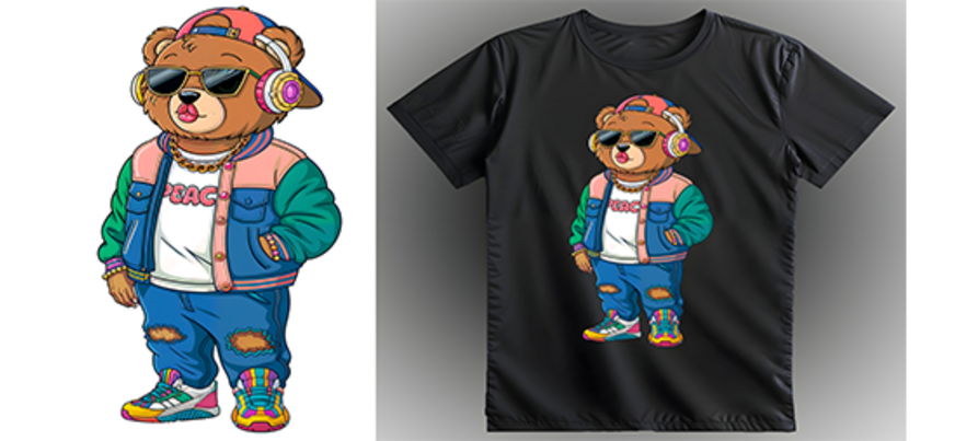 El diseño procesado se imprime en modo espejo en el film DTF con acabado de una capa de polvo adhesivo de fusión en caliente listo para colocarlo en la plancha transfer sobre la tela o superficie rígida. El material utilizado es bobina de 57 centímetros x 100 metros.