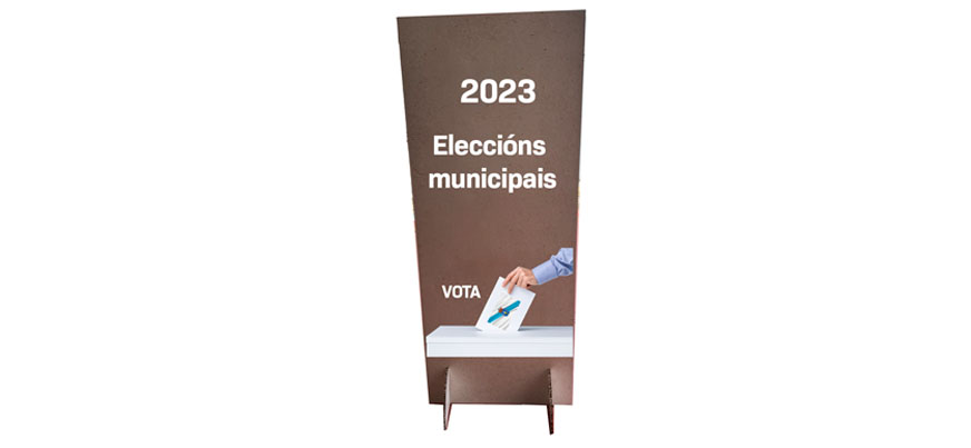 Polipropileno o Dispa cortados en forma de silueta con soporte en forma de peana o en la base para garantizar su apoyo.